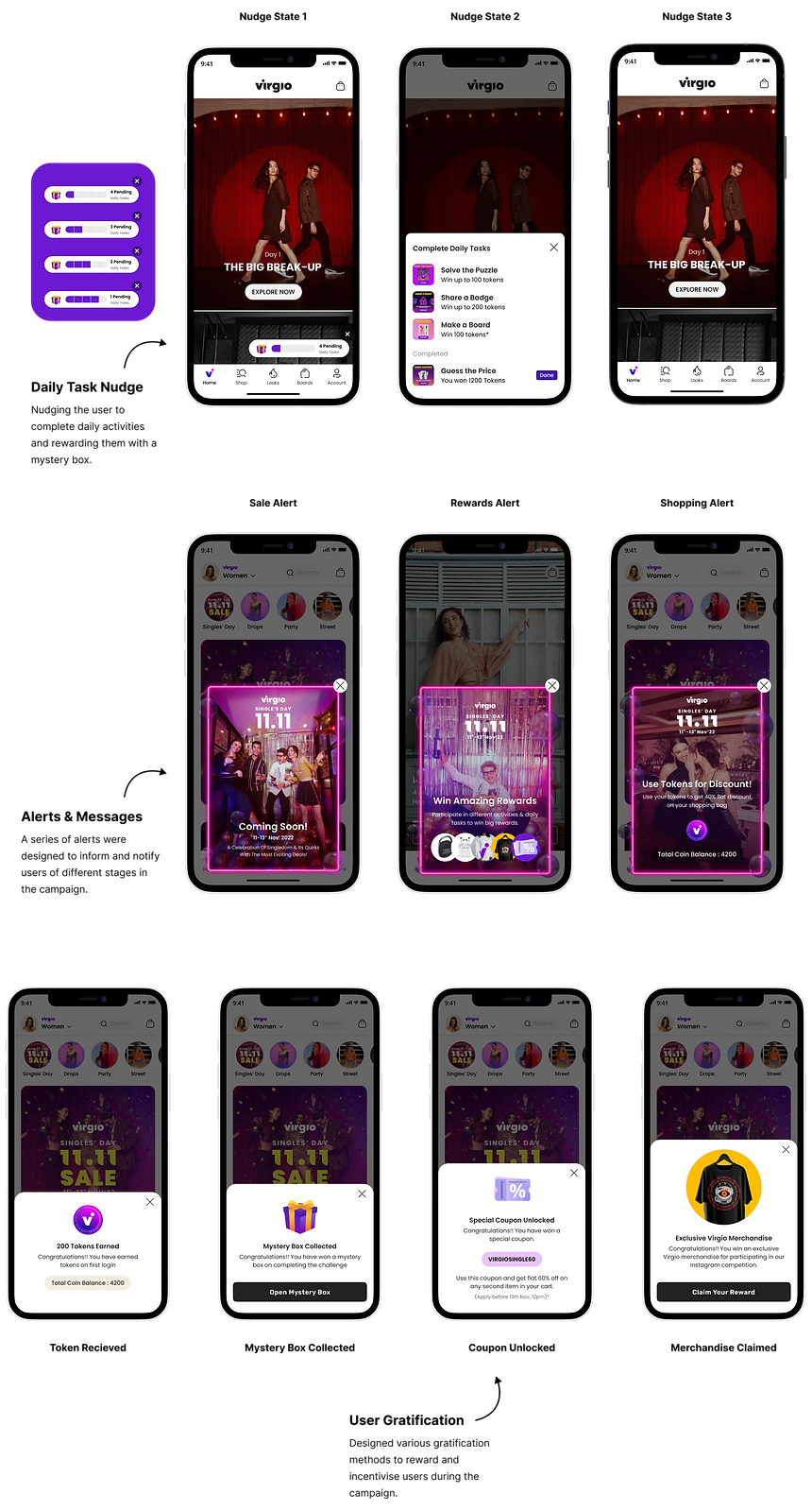 A UI/UX case study on designing mobile app experience for VIRGIO’s 11.11 Singles' Day Sale Campaign.